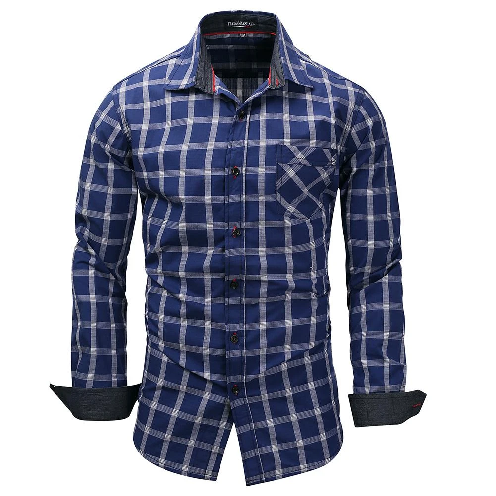Biru Tua Musim Gugur Baru Inggris Amplas Pria Lengan Panjang Kemeja Kotak Kotak Kasual Kualitas Berpetak Berwarna Biru Kemeja Pria Cina Mengimpor Pakaian Kemeja Kasual Aliexpress